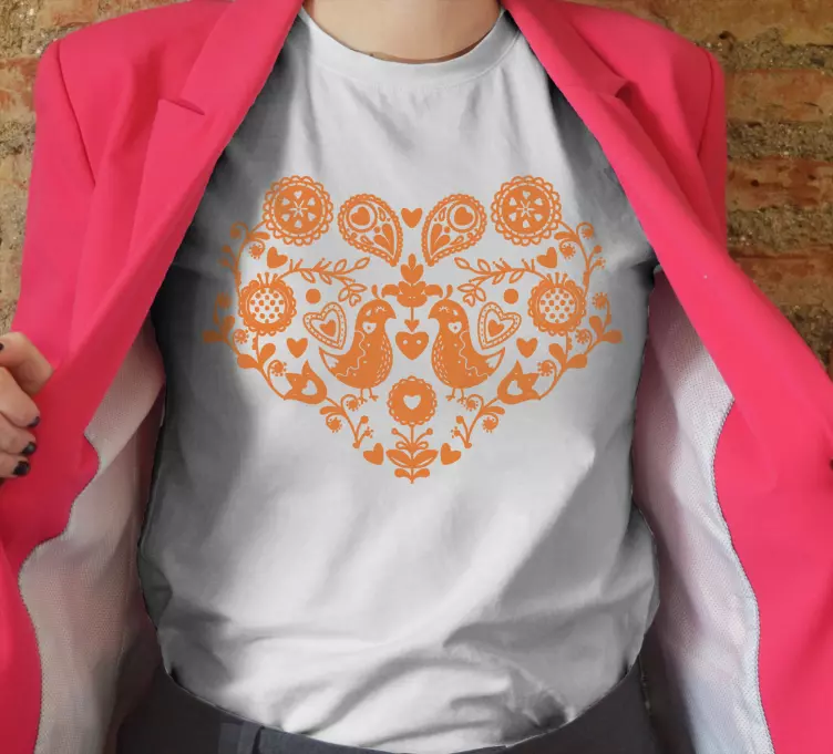 Choosing the Heart pattern birds t-shirt is more than just a fashion statement; it’s an embrace of art and emotion. Imagine wearing a t-shirt that not only looks great but also tells a story of love and tradition! This t-shirt is perfect for expressing your unique style while celebrating the beauty of intricate designs. Elevate your wardrobe today with this stunning piece!