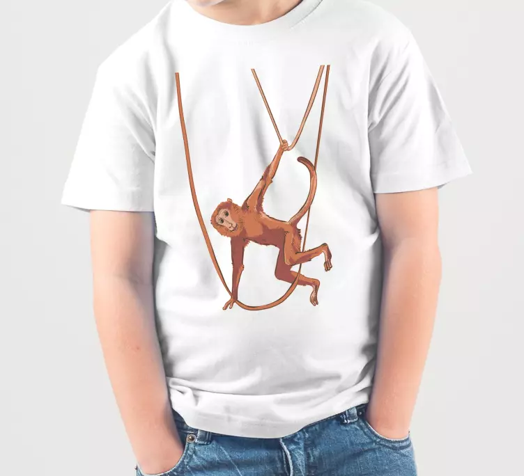 Introducing our delightful Kids t-shirt monkey swinging on a rope! This vibrant and playful design features a charming illustration of a monkey joyfully swinging on a rope, capturing the essence of fun and adventure. Perfect for children who love animals and nature, this t-shirt is sure to bring smiles and laughter to any outing!