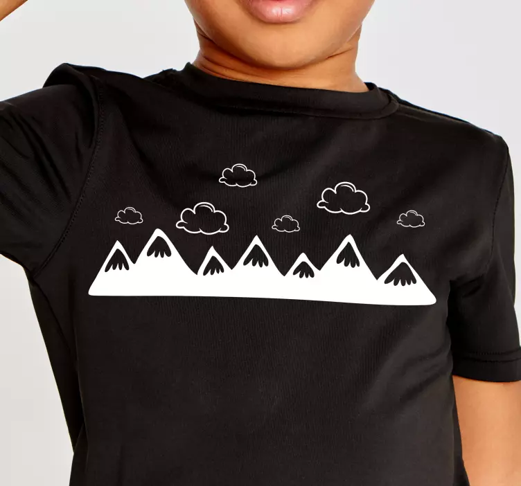 Embrace the spirit of the great outdoors with our Mountain cloud adventure t-shirt. This unique design features a captivating silhouette of majestic mountains surrounded by fluffy clouds, inviting children to embark on their next adventure. The contrast of black and white adds a touch of elegance, making it perfect for nature lovers.