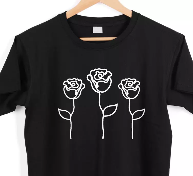 Introducing our stunning T-shirt minimalist rose blossom trio, where elegance meets simplicity! This design features a beautiful arrangement of roses and flowers in a striking line art style, encapsulating the essence of nature in a minimal and floral aesthetic. The black color adds a touch of sophistication to this elegant piece, making it a versatile addition to any wardrobe.