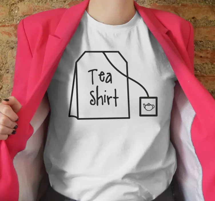 Reference: T4909This playful design combines a witty concept with a tea bag illustration. The text playfully reads 'Tea shirt,' appealing to tea lovers. The minimalist style and monochrome palette enhance its charm, making it a perfect choice for casual outings or special events.