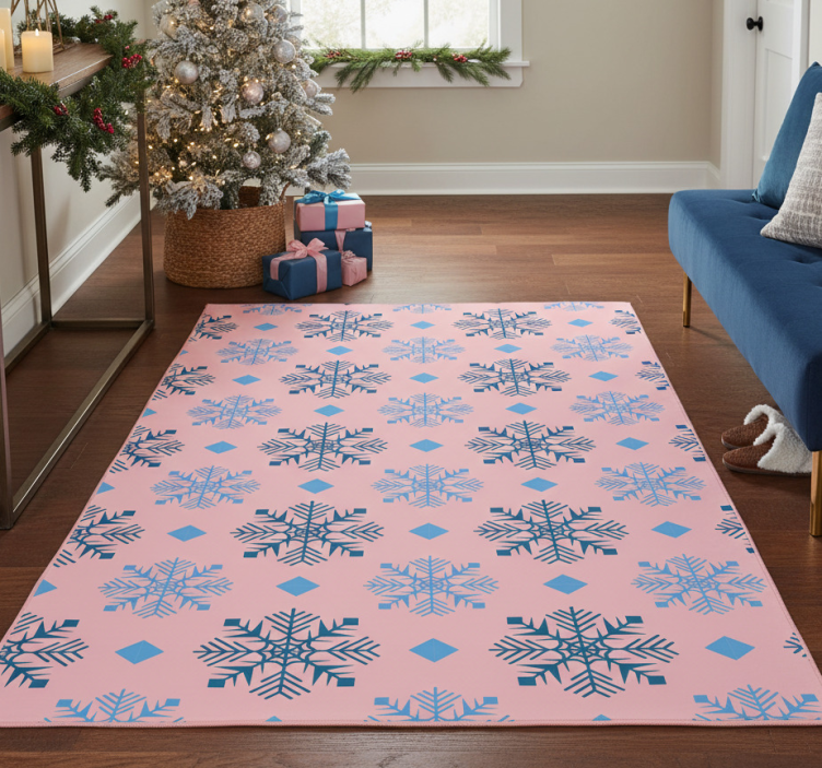 Christmas vinyl rug with pink and blue snowflakes