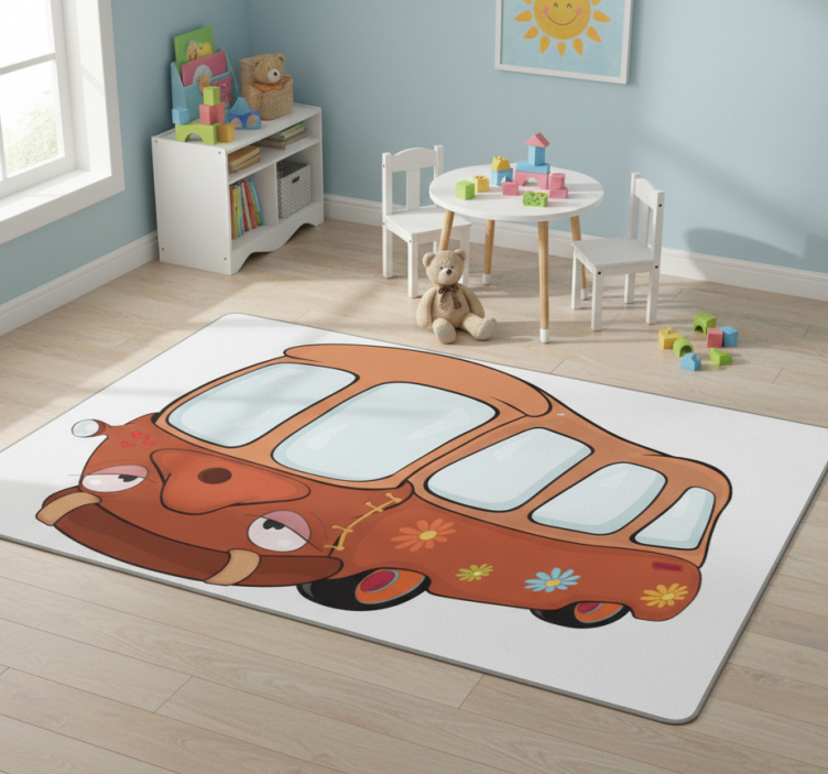 Kids vinyl rug school bus design