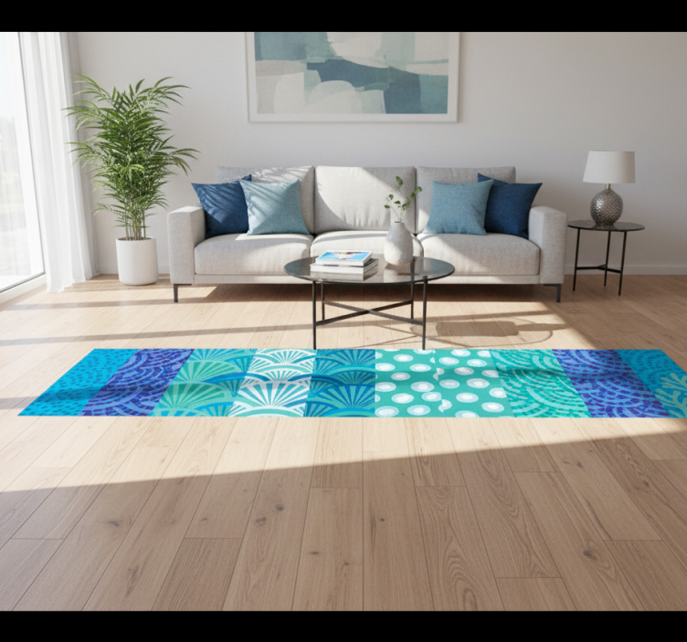 Living room vinyl rug with turquoise ocean design