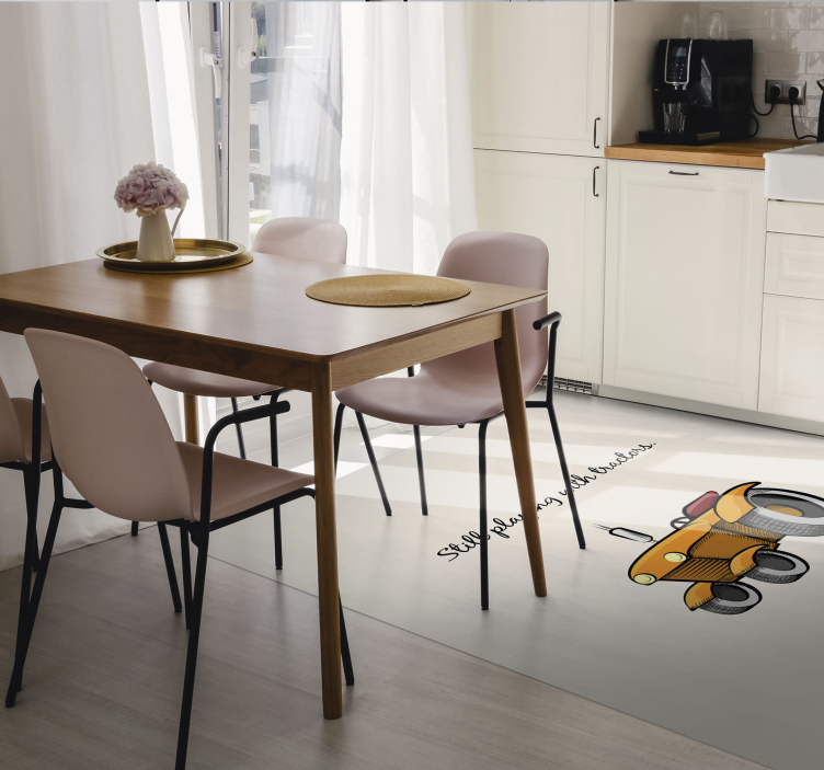 Transform your home with our unique vinyl carpet featuring an original tractor design. Our high-quality vinyl rug is perfect for any room in your home, including the dining room, kitchen, bedroom, and living room. The easy-to-maintain carpet can be washed, cleaned, swept, and mopped without any hassle.