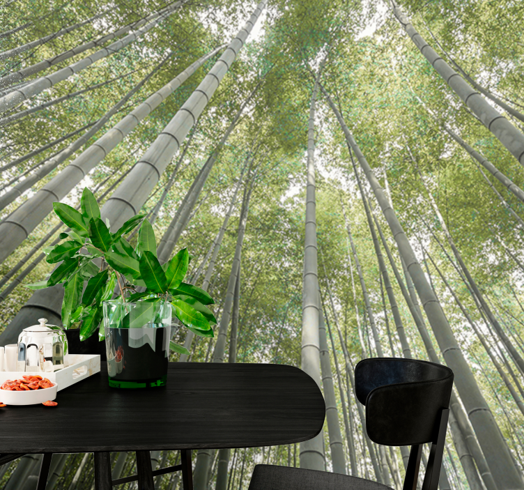Reference: F12097The design features a towering bamboo forest viewed from below, showcasing tall, slender bamboo stalks reaching upwards. The lush green leaves filter light softly, creating a serene atmosphere, perfect for those seeking a connection with nature.