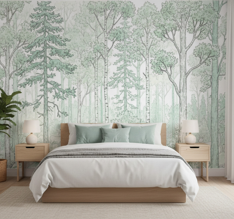 Transform your space with the Forest wall mural mint woodland illustration forest wall mural that inspires calm and tranquility. This enchanting design is perfect for breathing new life into any room, whether it's a cozy living area or a peaceful bedroom. Embrace the beauty of nature and let the woodland charm uplift your surroundings!
