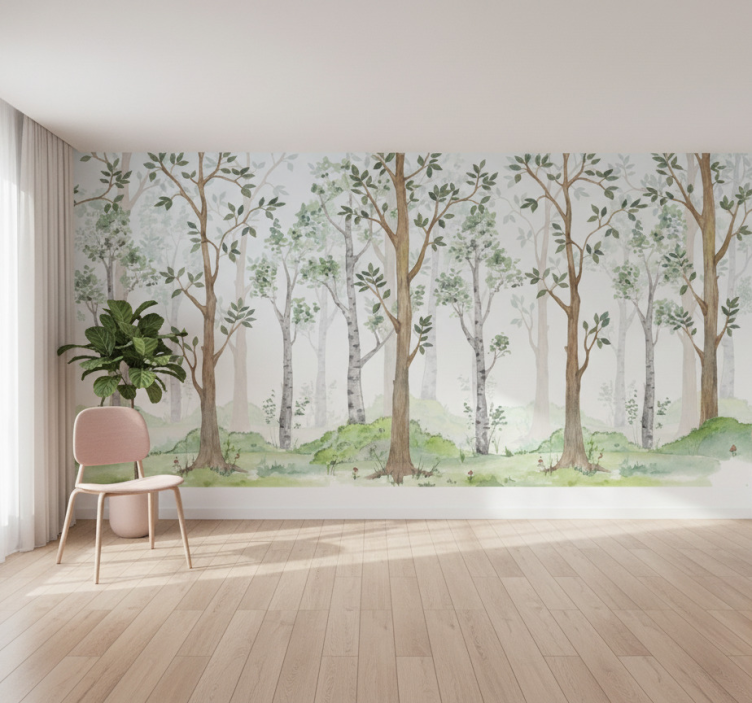 The Forest wall mural pastel woodland breeze forest wall mural is perfect for creating a tranquil atmosphere in any room. Imagine stepping into a serene forest every day! This mural invites nature into your home, adding a touch of elegance and whimsy that inspires relaxation and creativity. Whether you're decorating a living room, bedroom, or nursery, this mural acts as a beautiful backdrop that enhances your space and captivates your guests.