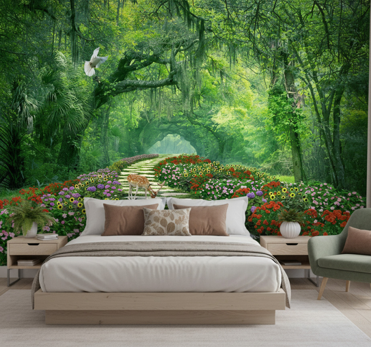 The Forest wall mural surreal woodland path forest wall mural is perfect for anyone looking to infuse their home with a touch of nature's magic. Imagine stepping into a serene woodland every day; this mural provides an escape from the ordinary and elevates your space to new heights. It inspires creativity and tranquility, making it an ideal choice for living rooms, bedrooms, or creative spaces!