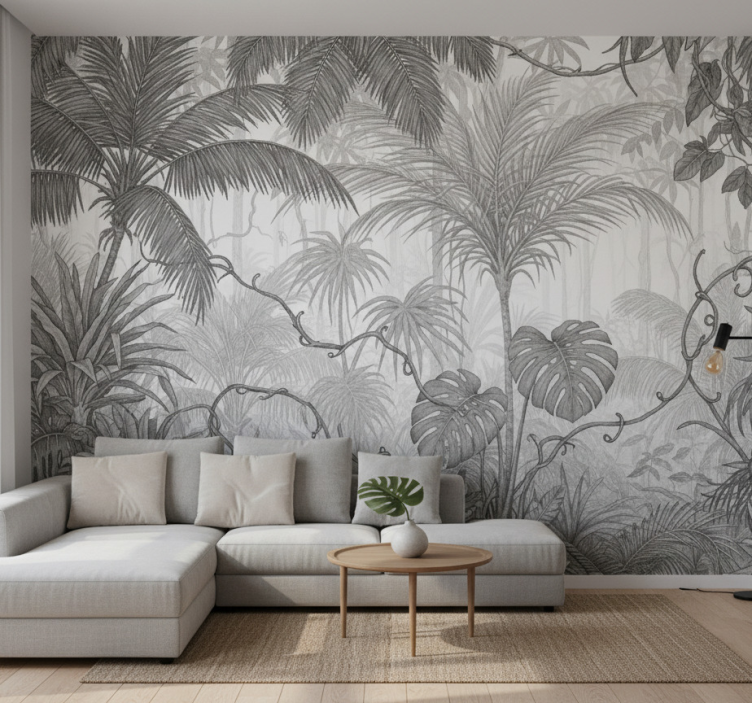 Reference: F11903Transform your space with the stunning Jungle wall mural cloud dancer landscape, where minimalist aesthetics meet elegance. This breathtaking design captures the serene beauty of a lush jungle, bringing nature's tranquility into your home. Its soft, muted colors create an inviting atmosphere, perfect for any room looking for a sophisticated touch!