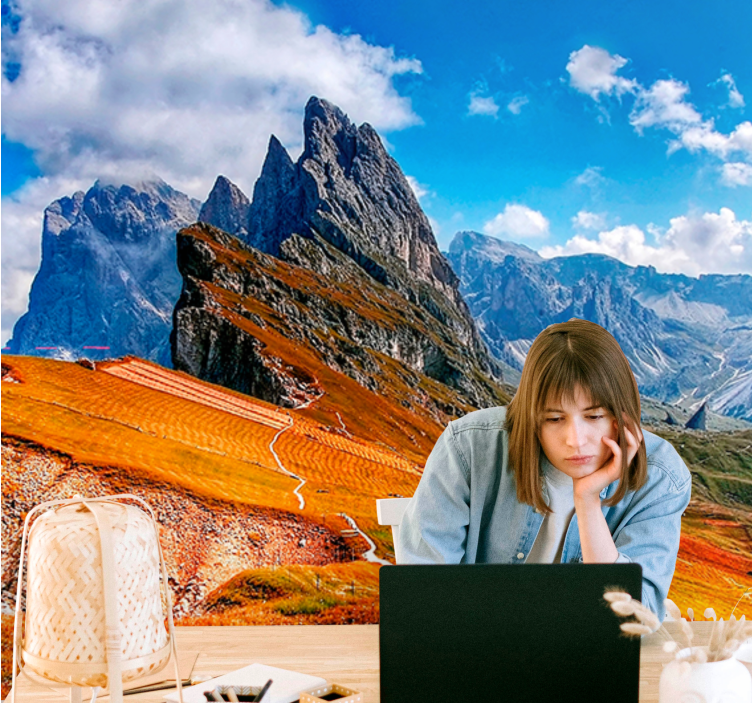 Transform your space with our stunning Landscape mural wallpaper mountain peaks view, featuring breathtaking rocky mountains, rolling hills, and a picturesque landscape that captures the essence of nature. This exquisite design, adorned with fluffy clouds and majestic mountains, brings the great outdoors right into your home, creating a serene and inviting atmosphere!
