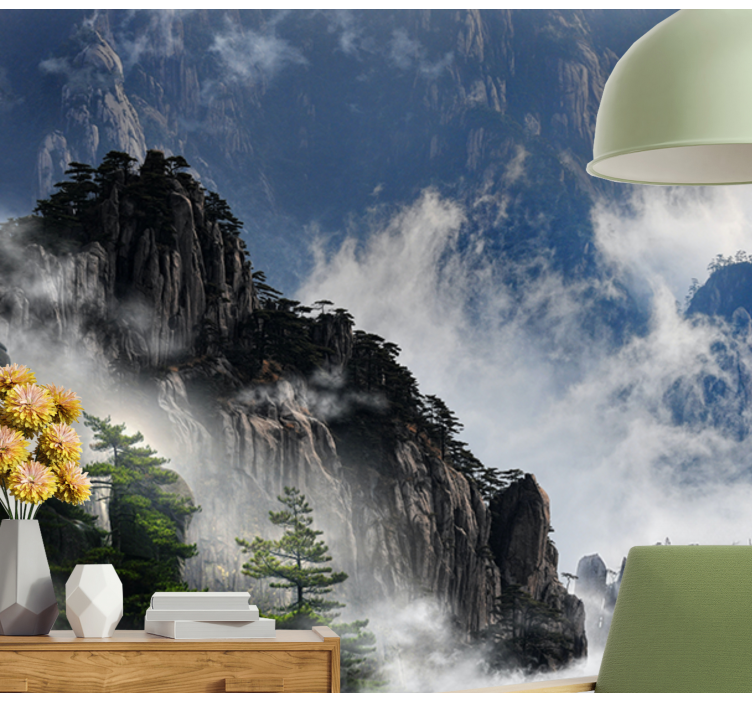 Transform your space with our stunning Nature wall mural mountainous fog landscape. This breathtaking design captures the serene beauty of majestic mountains, the tranquil expanse of the sky, and the gentle embrace of clouds and fog, all harmoniously blended with lush trees. A perfect escape into nature, this mural invites you to experience the calm and wonder of the great outdoors right within your home!