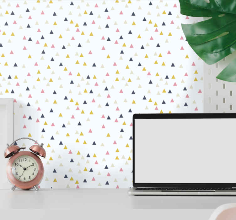Transform your space with our Colorful minimalistic white design triangle wallpaper, where vibrant triangles converge in a stunning geometric pattern. This design features a harmonious blend of colors, creating an eye-catching atmosphere that elevates any room. Perfect for modern decor enthusiasts, it seamlessly combines artistry with simplicity!
