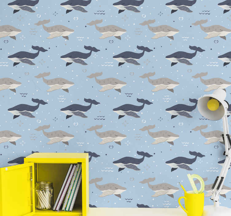 Reference: P1408Transform Your Child's Room with Our Whales on Waves Cool Animal Wallpaper